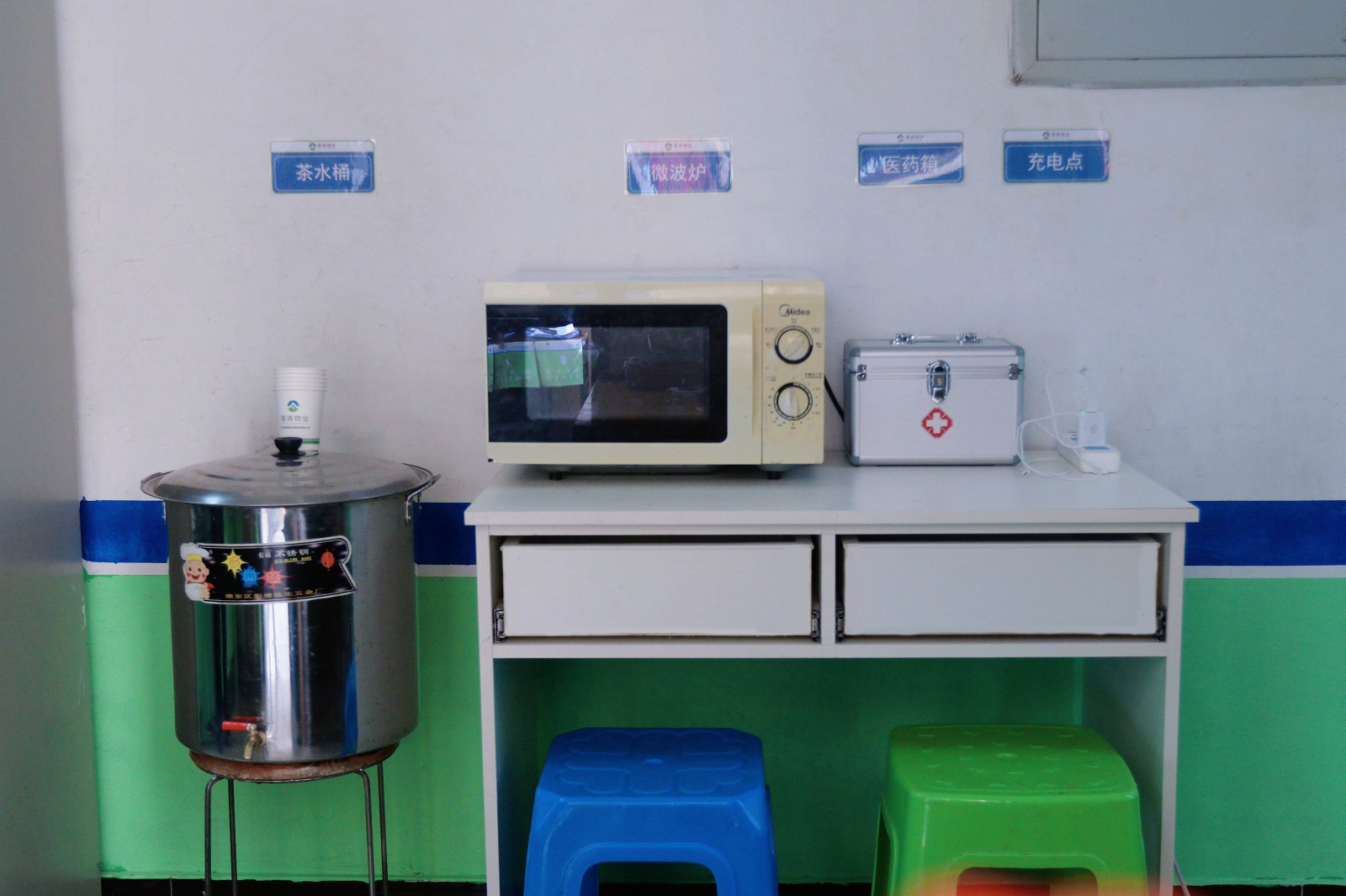 在连续的高温天气影响下,长时间的高温作业给户外工作者们带来了诸多的不便和隐患,针对避暑降温这一普遍需求,贴心的工作人员在驿站内准备了饮用水、医药箱,让户外工作者们在工作的同时可以保持良好的健康状态,同时驿站还配备了多功能充电器、雨伞、雨衣等物品借用,以备不时之需。