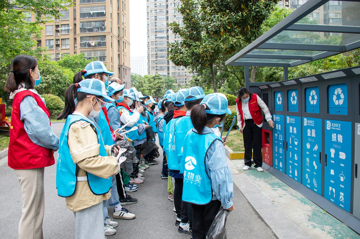 在党员志愿者们精心布置的活动现场,小业主们有序聚集,他们身穿我司统一定制和分发的“环保作战套装”,手持保洁工具,在党员志愿者的带领下,实地学习和了解垃圾分类知识,深入领会垃圾分类的目的和意义,通过这堂趣味生动的环保教育课,将环保理念和意识成功扎根于孩子们心中。