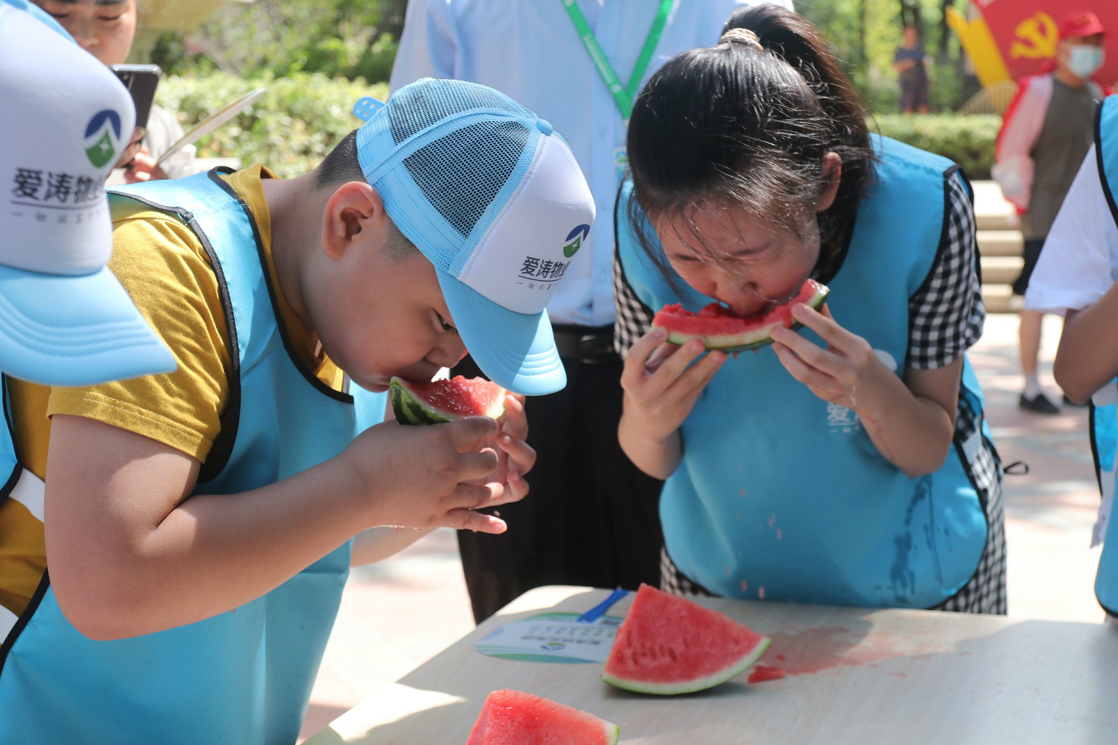 率先吃完西瓜的业主们开心地举起了手,并在服务台领取奖励,家长们在一旁看着孩子们开心的模样,甚是喜悦,拿起手机拍照记录这一幸福瞬间,都表示非常喜爱和期待夏天的吃西瓜活动,已经成为了孩子们暑假的快乐源泉之一,希望能够将其继续延续下去。