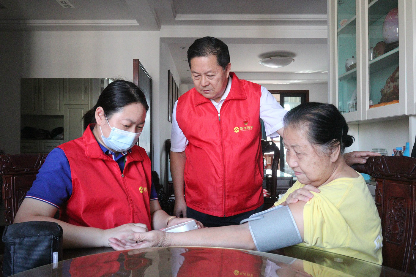 党员志愿者们与老人们畅聊家常,主动关心他们的身心健康等情况,主动为老人测量血压、打扫卫生、检查用电用气安全,保障老人们度过一个平安祥和的节日。王奶奶用幸福的笑容对这亲如家人般的服务表达了感谢,说道:“我们遇事会找物业,不用担心,谢谢!”
